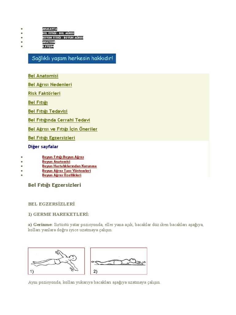 Bel çevresindeki ağrıları azaltmak ve bölgedeki kasları gevşetmek için evde birkaç dakikanızı ayırarak uygulayabileceğiniz bel egzersizleri ile ağrılarınızdan kurtulabilir. Bel fıtığı nasıl anlaşılır belirtileri nelerdir ağrısı nasıl olur geçer ameliyatı var mı hangi egzersizleri yapmak gerekir.