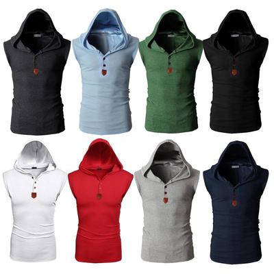 Erkek haki kapüşonlu kolsuz t shirt.