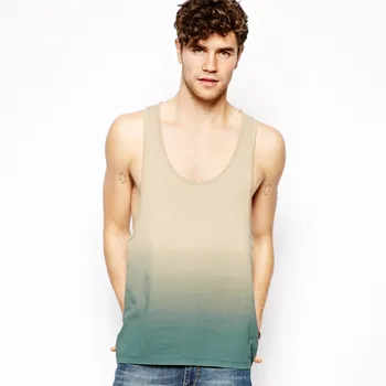 Dünya spor kiriş tankı. Gevşek açık bir uyum ile 100 pamuk erkek tank top. Roll up önlemek için omuz askıları dikilir.